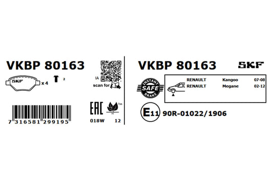 PASTILHAS TRAVÃO SKF VKBP80162E